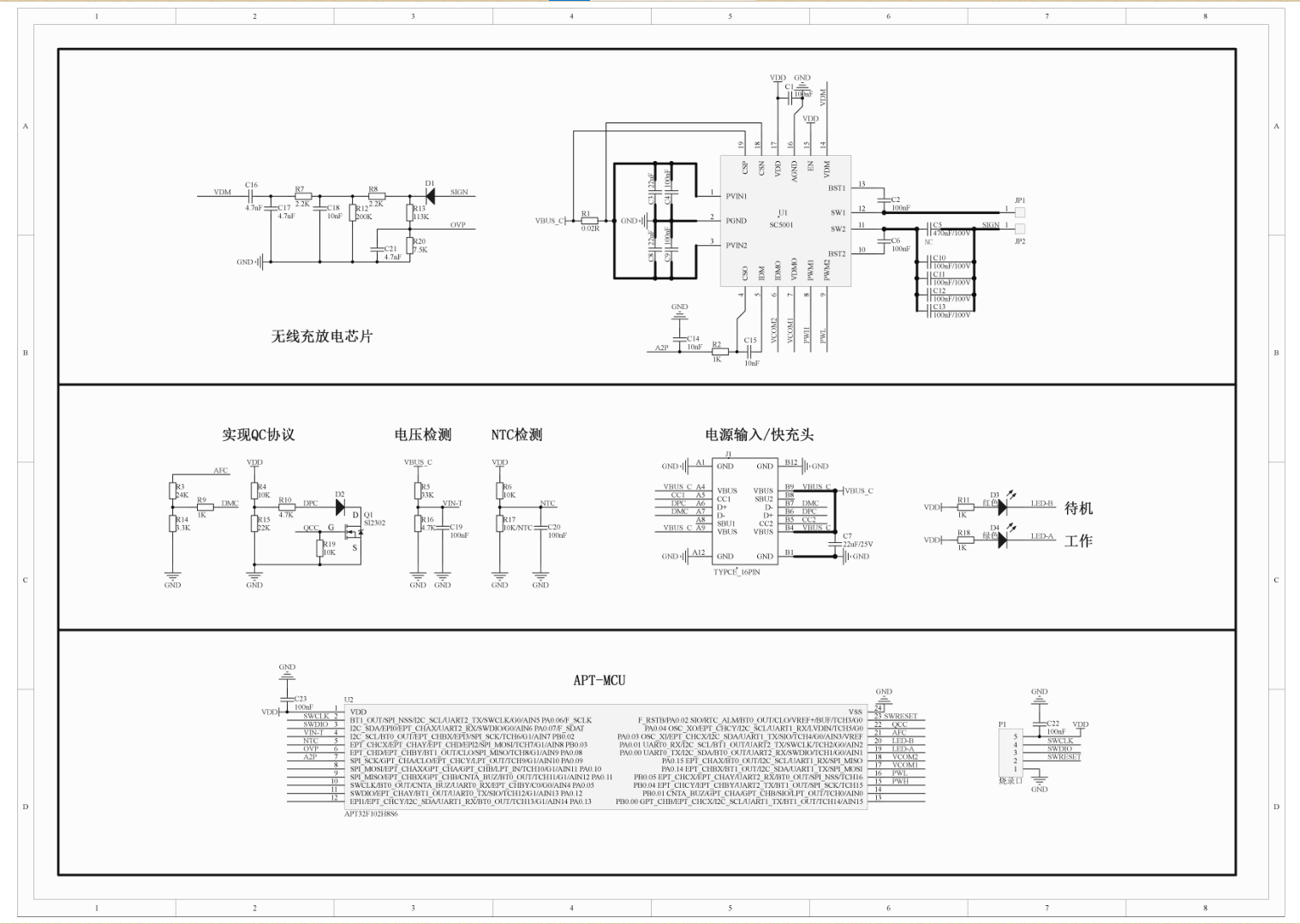 愛普特推出15W手機無線單線圈單充方案,亦可改造為多線圈單充或多線圈多充。方案中使用的32位MCU,型號系列為APT32F102x。APT32F102x基于平頭哥半導體CPU內核,外設資源豐富,可用于開發無線充需求的外設資源:48MHz內振主頻,22個I/O,64K-Flash,4K-SRAM,3組互補帶死區的16位PWM,多通道一次性采集完成12位ADC,ETCB聯動模塊。優勢資源48MHz內振可以輕松實現QI快充協議編碼,PWM通過ETCB聯動定時器實施快充協議,3組互補帶死區PWM,可以擴展多線圈單充或多線圈三充。
