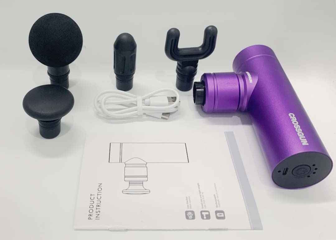 打開盒子可見筋膜槍及其所有配件如下圖。