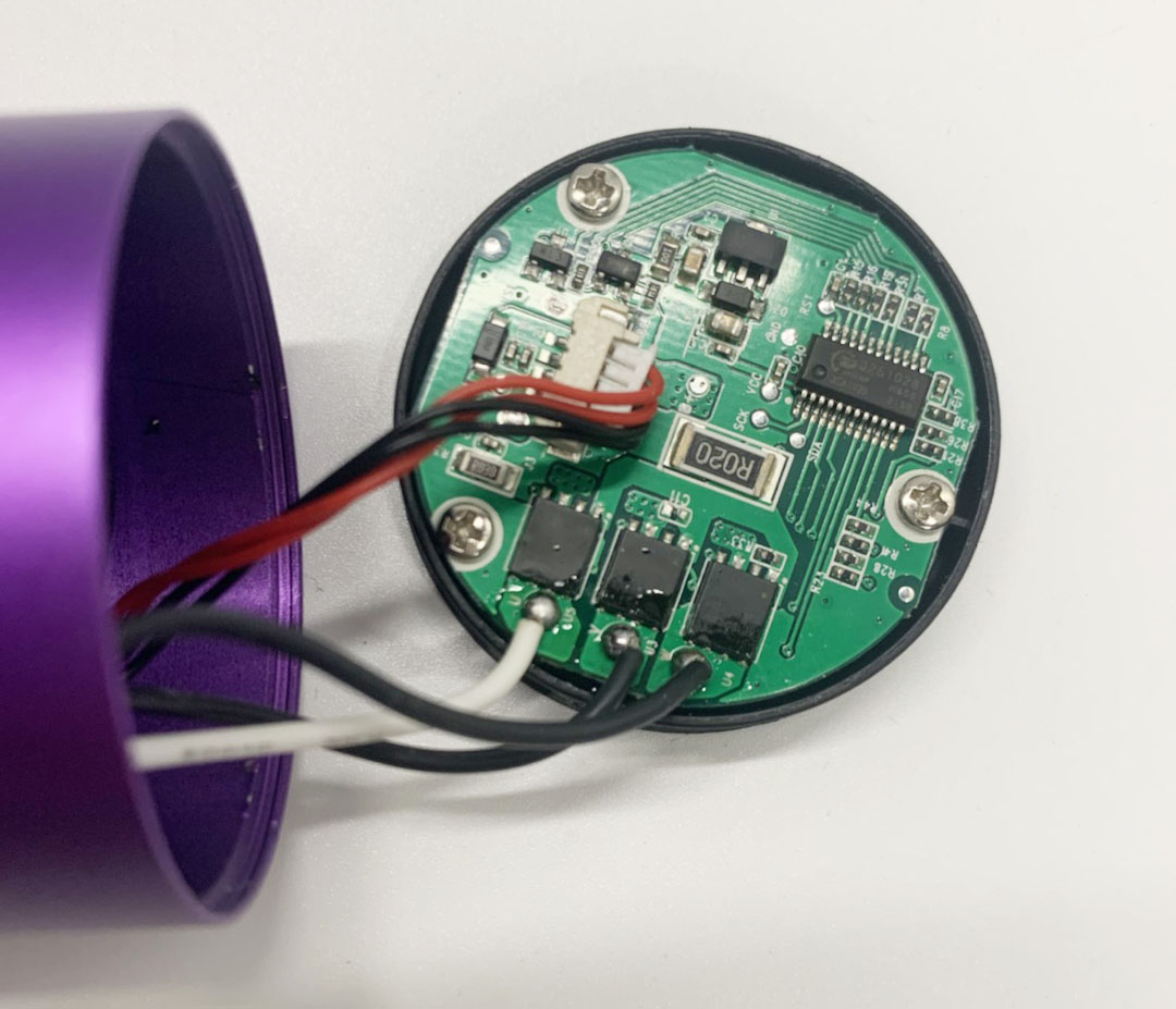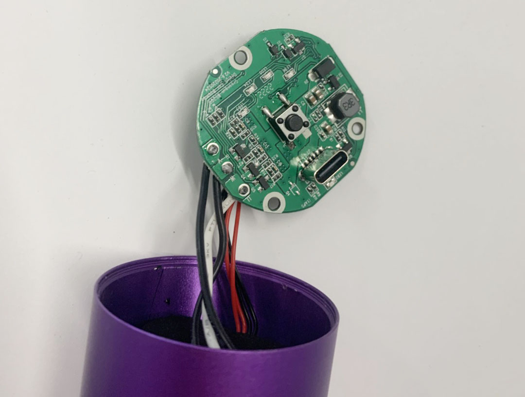 接下來我們看下電池部分。電池使用的是11.1V標準產品,充電電壓為12.6V,該部分由愛普特APT32F1023直接升壓智能充電管理。