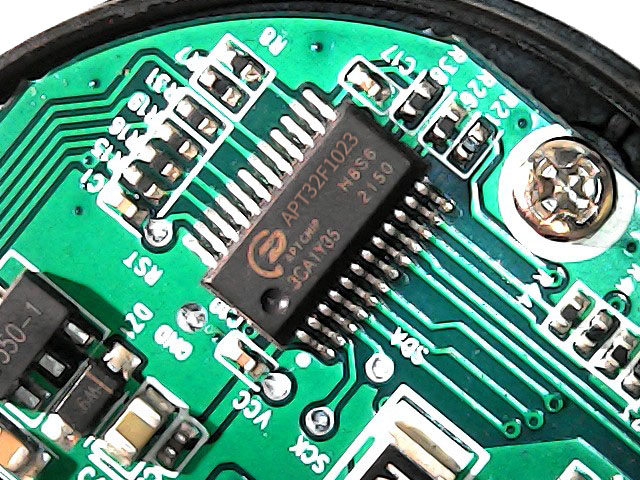 主控板上使用的是愛普特微電子推出的APT32F1023H8S6芯片。此芯片是基于平頭哥半導體(T-HEAD Semiconductor) CPU內核開發的32位高性能單片機。