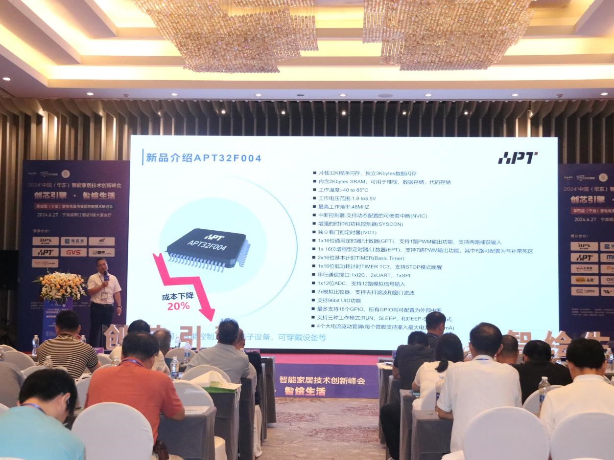 作為智能家電、工業控制等領域全國產32位MCU領軍企業,愛普特微電子受邀參加此次活動,并在活動上作了《全國產RISC-V MCU助力智能家電產業全芯升級》專題分享,詳細介紹了愛普特在智能家電領域的創新技術、高可靠全國產MCU產品、熱門量產方案等成果。同時發布了今年2個新品系列:APT32F104、APT32F004產品。